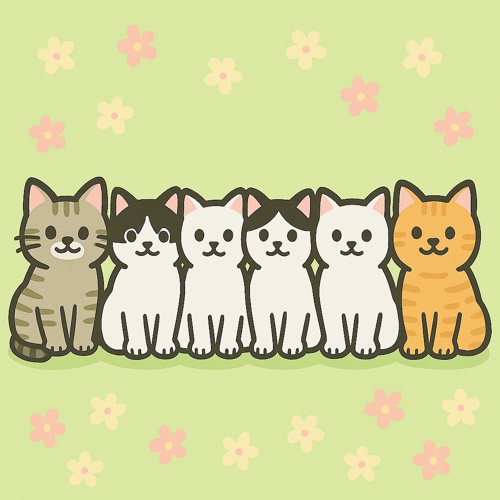 左側3匹と右側3匹で、私の掛け布団をネコ達の体重で上からガッシリ押さえ込まれてしまいます💦